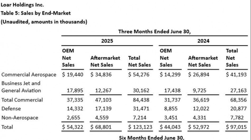„Mit der erfolgreichen Umsetzung der Maßnahmen bei allen Werttreibern und dem vielschichtigen Angebot unseres diversifizierten Kompetenzspektrums ist uns ein perfektes Zusammenspiel gelungen, das diese Rekordergebnisse im zweiten Quartal möglich gemacht hat", so Dirkson Charles, CEO von Loar und Executive Co-Chairman im Board of Directors. „Jeder unserer Endmärkte konnte Rekordumsätze verbuchen. So stieg etwa der Umsatz im Bereich Commercial OEM um 18 %, im Bereich Commercial Aftermarket um 29 % und im Bereich Verteidigung um 51 % gegenüber dem zweiten Quartal 2024. Darüber hinaus freuen wir bei Loar uns riesig, das Team von Beadlight Ltd. bei uns willkommen zu heißen. Beadlight ist mittlerweile unsere 18. Übernahme seit der Firmengründung im Jahr 2012."