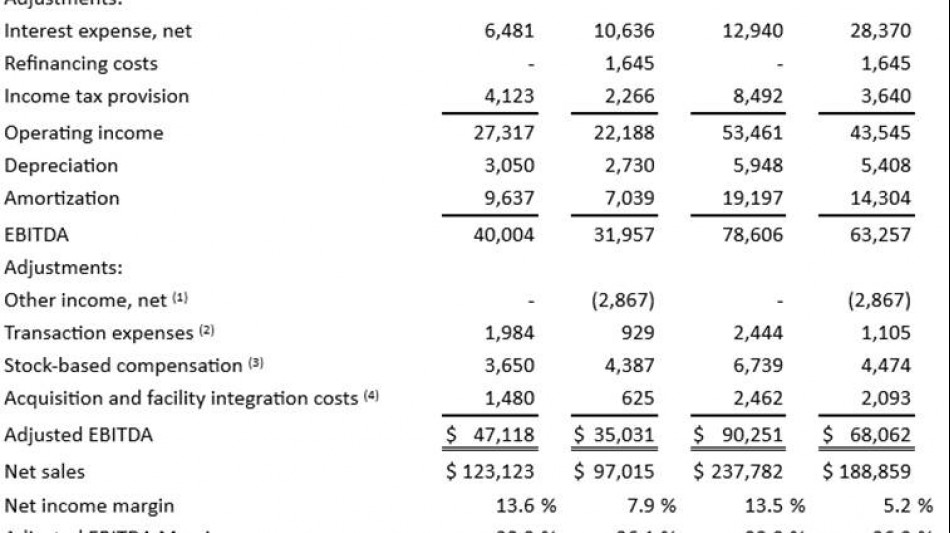 Aufgrund dieser Einschränkungen sollten das EBITDA, das bereinigte EBITDA, die bereinigte EBITDA-Marge und das Ergebnis pro Aktie nicht als Messgrößen für die Barmittel angesehen werden, die uns für Investitionen in das Wachstum unseres Unternehmens zur Verfügung stehen. Das Management kompensiert diese Einschränkungen, indem es das EBITDA, das bereinigte EBITDA, die bereinigte EBITDA-Marge und das Ergebnis pro Aktie nicht isoliert betrachtet, sondern insbesondere andere US-GAAP-Kennzahlen wie den Nettoumsatz und den Betriebsgewinn zur Messung unserer betrieblichen Leistung heranzieht. Das EBITDA, das bereinigte EBITDA, die bereinigte EBITDA-Marge und das Ergebnis pro Aktie sind keine Messgrößen für die finanzielle Leistungsfähigkeit nach US-GAAP und sollten nicht als Alternative zum Nettogewinn oder zum Cashflow aus der Geschäftstätigkeit gemäß US-GAAP betrachtet werden. Unsere Berechnungen des EBITDA, des bereinigten EBITDA, der bereinigten EBITDA-Marge und das Ergebnis pro Aktie sind möglicherweise nicht mit den Berechnungen ähnlich bezeichneter Kennzahlen vergleichbar, die von anderen Unternehmen ausgewiesen werden.