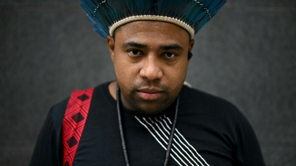 "My people, the culture, has always been linked to the river," Krenak said, wearing a traditional headdress with striking blue feathers.