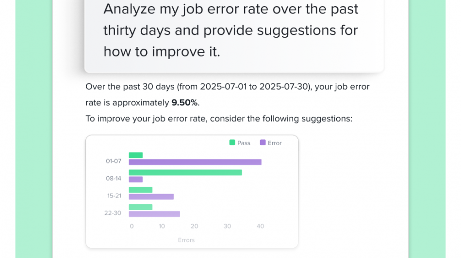 Modern engineering organizations generate massive amounts of testing data, yet traditional approaches to analysis-manual log reviews, static dashboards, and complex query languages-can't keep up with the scale and complexity. As organizations embrace shift-left practices and developers take on more testing responsibilities, teams lack the time and tools to easily interpret results or identify root causes. This creates decision-making bottlenecks, slows releases, and forces teams into reactive firefighting instead of proactive quality improvement.